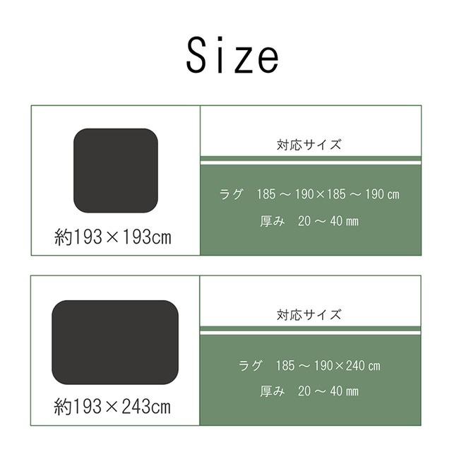 ラグサイズ厚み20〜40mmのボリュームタイプのカーペットに対応したカバーです。