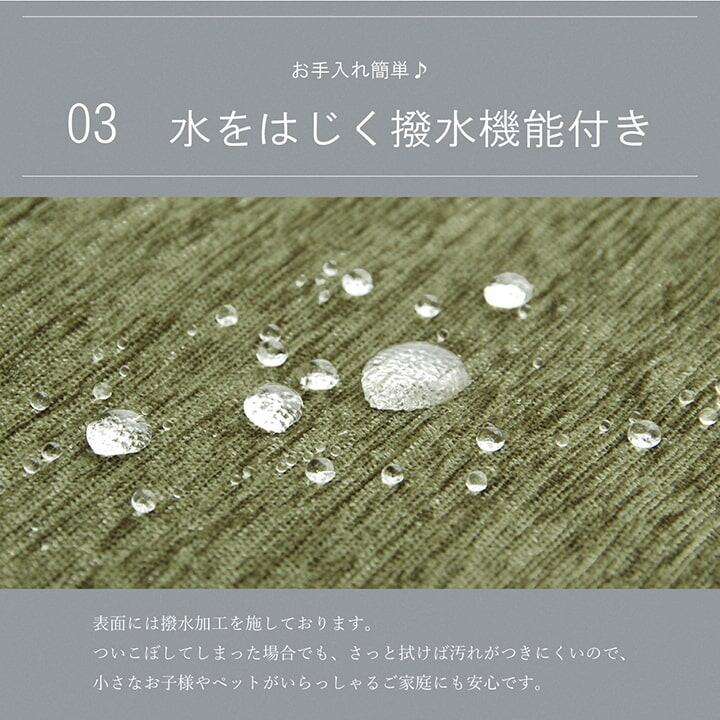 表地には撥水加工を施しており、水分をはじいてサッと拭くだけ。