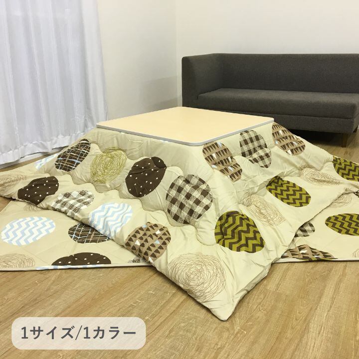 ピーチスキン生地のリーフ柄デザインで、柔らかな肌触りが特徴。こたつ掛けと敷きのセットです