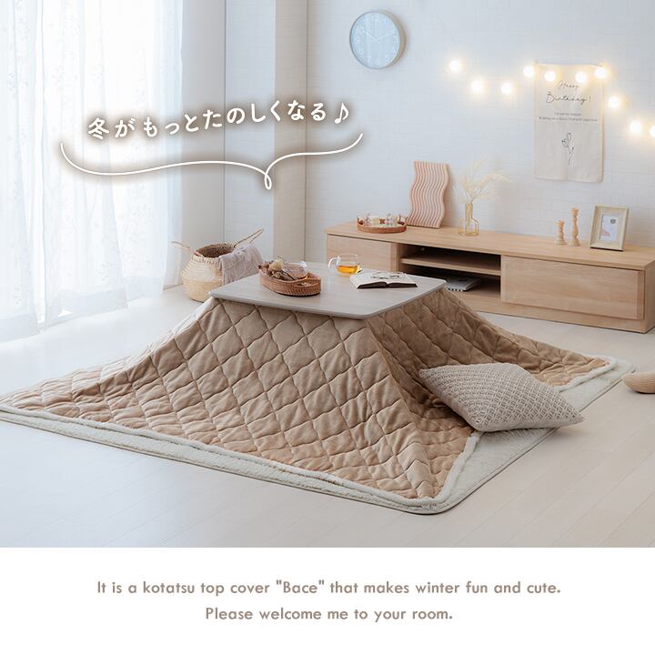 フチ部分はふわもこなボア仕様で、こたつに入った時に体にフィットします。