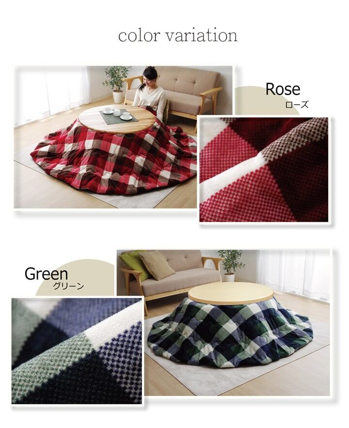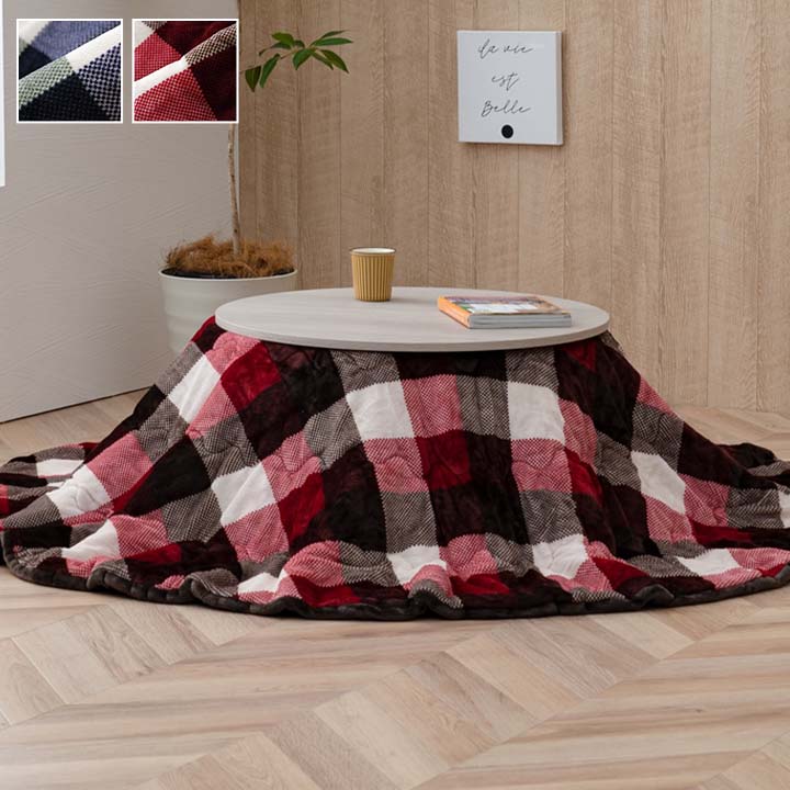あたたかみのあるカラーと素材を使用したチェック柄のこたつ布団です。表地は肌触りの優しい柔らかなフランネルを使用しています。はっ水加工を施しているため、さっと拭き取っていただけます。薄手なので折りたたんでもかさばらず、コンパクトに収納できます。部分暖房のコタツは電気代もおトクです。
