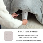 あたたかみのあるカラーを使用したこたつ布団です。表地は凹凸感を持たせポコポコとしたタッチ感が特徴です。裏地にはなめらかな肌触りのフランネルを使用しています。薄手なので折りたたんでもかさばらず、コンパクトに収納できます。布団の内側に紐をつけることにより、布団と台がずれないようにしました。部分暖房のコタツは電気代もおトクです。