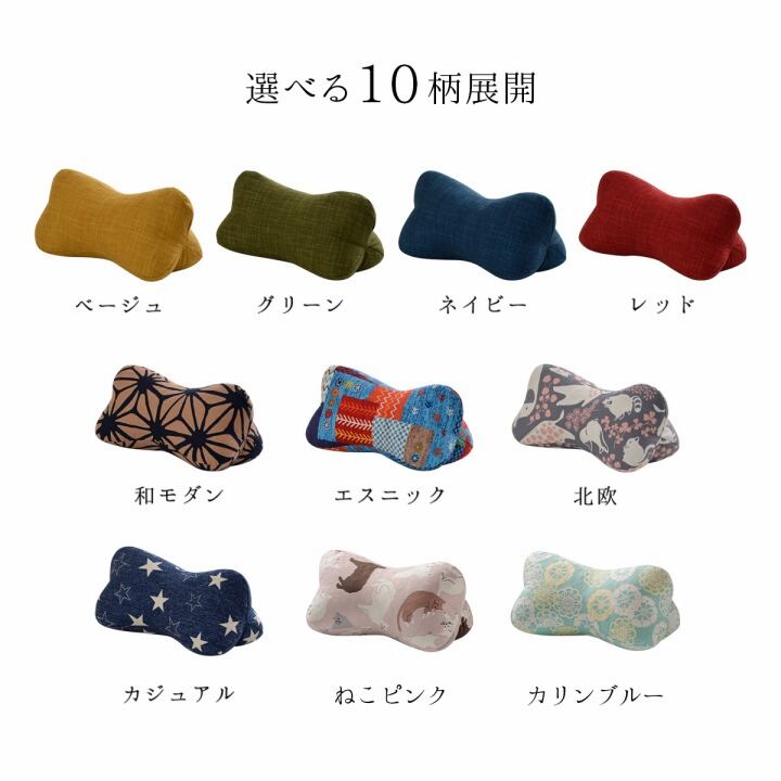 お昼寝まくらに、足まくらに、腰にあててクッションとしてなど、使い方いろいろです。 中材には低反発ウレタンチップとソフトパイプを絶妙なバランスで混ぜ合わせたものを使用しており、何とも言えないモッチリとした触感を実現しました。 色・柄のバリエーションが豊富なので、ご家族やご夫婦でのセット買いも人気です。