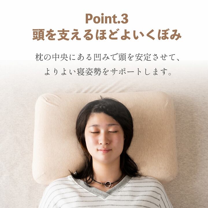 枕中央には凹みがあり頭を安定させます。