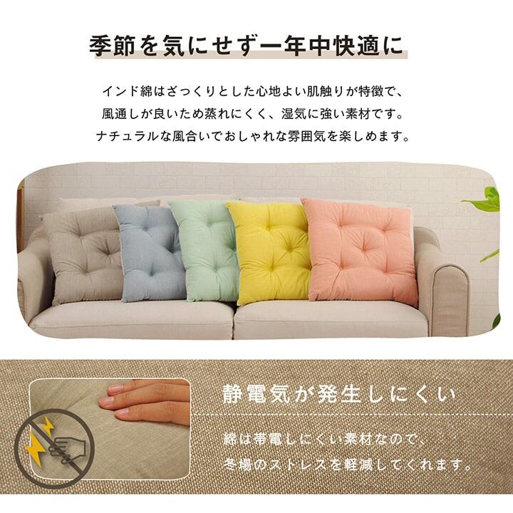 安心の日本製です。インド綿100%のオーガニックコットンを使用し、ざっくりとした肌触りが特徴です。シンプルで飽きの来ないデザインです。同色2枚セットでまとめ買いにおすすめです。季節を問わずご使用いただけます。表生地と中材は一体となっています。(カバー取り外し不可)
