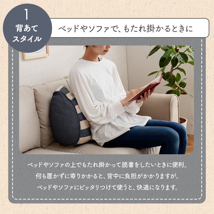 シンプルで飽きの来ないデザインで、ソファの腰当としてや、座布団、枕代わり、読書に等、それぞれのライフスタイルにあった用途でご使用いただけるよりかかりクッションです。