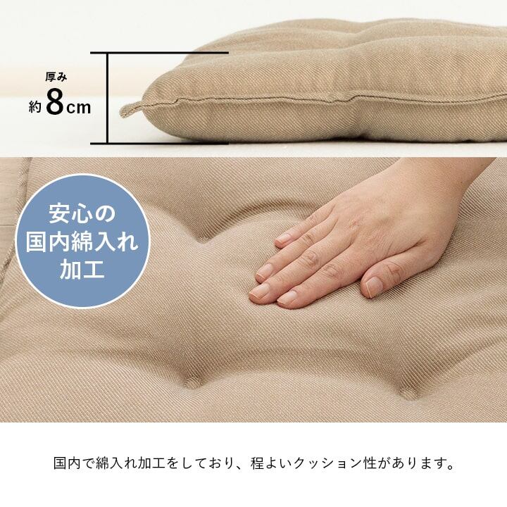 国内で綿入れ加工をしているためほどよいクッション性が特徴です。
