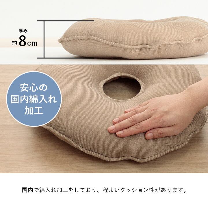 椅子やリビングでも使用できる無地の穴あきクッションです。