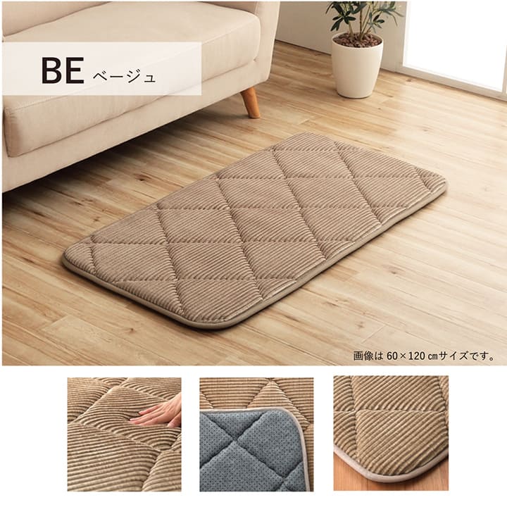 へたりにくいクッション性、弾力性があるクッションです。あたたかみのあるコーデュロイ調生地を使用しています。手触りもやわらかいです。椅子の上、フローリングの上、ソファーの上などに使用可能です。安心の滑り止め付きです。