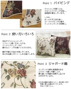 エレガンス柄のクッションです。人気の柄で洋室にもぴったりの商品です。表地にはジャガード織の生地を使用しているため上品な風合いのある商品です。