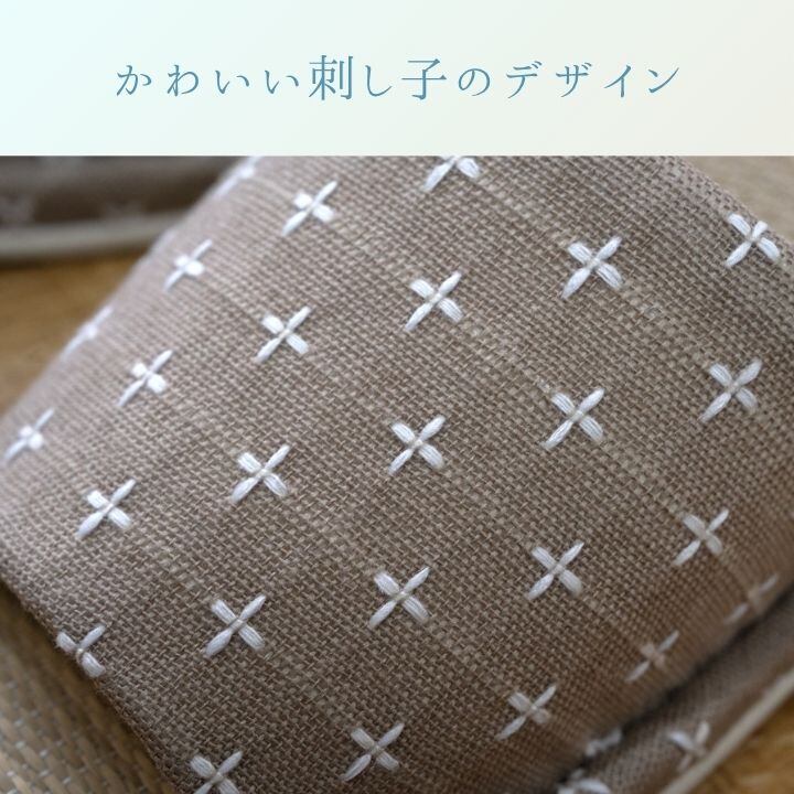 国産い草を使って国内で製造しています。かわいい刺し子のデザインです。