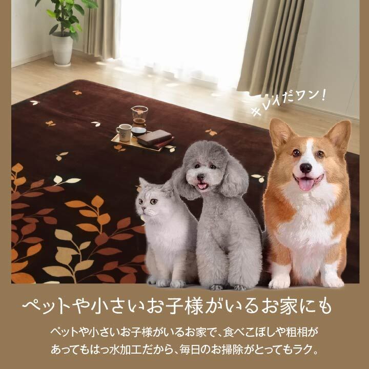 なめらかな肌触りのフランネルを使用した,超大判ラグです。撥水加工を施しているので,日常のちょっとした汚れからラグを守ります。コンパクトにたためるので,収納にも場所を取りません。裏面はフローリングを傷つけにくい不織布張りで,滑り止め加工を施しています。床暖房・ホットカーペットにも対応しており,オールシーズンお使いいただけます。