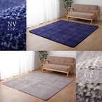 無地系のシンプルデザインです。表地は針抜きでポコポコとした凹凸を出し、なめらかな肌触りの珊瑚マイヤーを使用しています。裏面には滑りにくい加工を施しています。毛足が短いため、お掃除が簡単です。床暖房・ホットカーペット対応です。オールシーズンお使いいただけます。