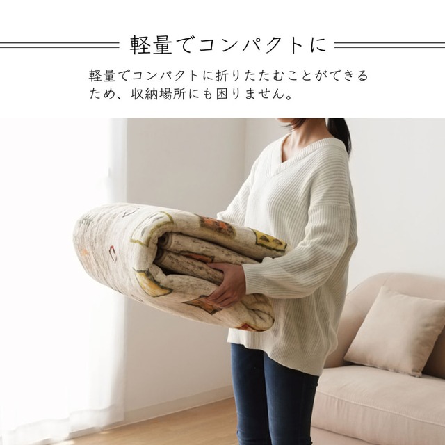 高目付のラグにギャベ柄のデジタルプリントを施した,デザイン性の高いラグに仕上げました。サラサラとした柔らかな肌触りです。軽量でコンパクトにたためるので,収納にも困りません。手洗いで洗濯ができるため,衛生的です。床暖房・ホットカーペットにも対応しており,オールシーズンお使いいただけます。
