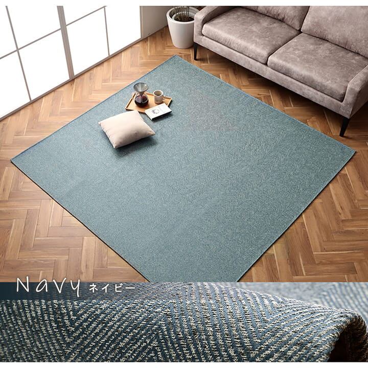 ジャガード織で立体的に上品なヘリンボーンを表現したラグ。選べる5色展開でお部屋に合ったお色を選べます。毛足が短いためゴミが絡まりにくく、掃除機もスムーズにかけられます。裏面はフローリングを傷つけにくい不織布貼り。滑り止め加工を施しています。電気カーペット、床暖房対応。ご家庭の洗濯機で丸洗いできるためお手入れも簡単です。軽量でコンパクトにたためるので、収納にも場所を取りません。
