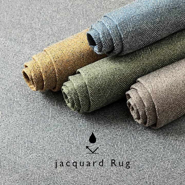 ジャガード織で立体的に上品なヘリンボーンを表現したラグ。選べる5色展開でお部屋に合ったお色を選べます。毛足が短いためゴミが絡まりにくく、掃除機もスムーズにかけられます。裏面はフローリングを傷つけにくい不織布貼り。滑り止め加工を施しています。電気カーペット、床暖房対応。ご家庭の洗濯機で丸洗いできるためお手入れも簡単です。軽量でコンパクトにたためるので、収納にも場所を取りません。