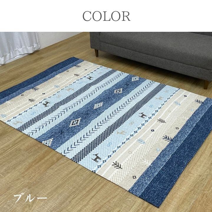 表地にシェニール生地を使用しており、なめらかで通年使える商品です。表地にはっ水加工をしていますのでお手入れ簡単。裏にすべりにくい加工をしています。柄は人気のギャベ柄です。