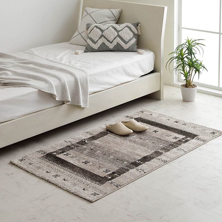 摩擦に強いポリプロピレン糸をパイル部分に使用しています。パイルは3本の糸でしっかり締め付けているため、遊び毛がでにくく耐久性に優れています。