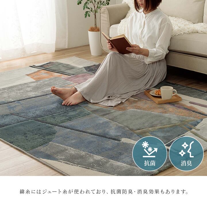 斬新なデザインが特徴的で様々なお部屋にも合わせやすいアブストラクト柄のウィルトンラグ。