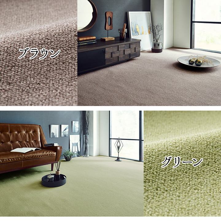 安心の日本製カーペットです。表地には撥水加工を施しておりますので,汚れにくくお手入れも簡単です。表地のパイル部分にはナイロンを使用しています。ナイロンは強度や摩耗に強く,速乾性があり,また遊び毛も出にくいなどの特徴があります。敷き詰めカーペットとしてのご使用にも適しています。抗菌防臭機能付きで,季節を選ばずオールシーズンご使用頂けます。安心の防炎加工です。フローリングを傷つけにくいよう,裏には不織布を貼っております。
