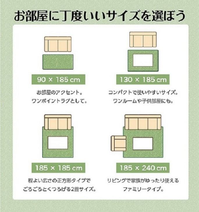 年間ご使用できる商品です。短毛使用でお掃除もしやすくまた、コンパクトに畳めます。15色展開で色々なお部屋のシーンに対応しています。ナチュラル系、ダーク系、ビンテージ系と様々なお部屋に合わせることができる優れものです。