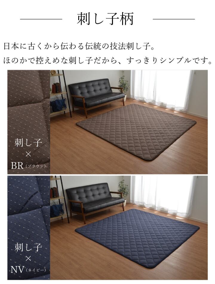 大人気「先染めこたつ」シリーズ! 豊富な柄,サイズで大人気のこたつ布団シリーズのこたつ敷き布団(キルトラグ)です。 表地は,綿100%の先染め生地を使用しております。