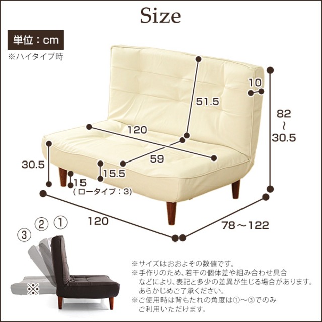 外寸:(約)幅120x奥行き78〜122x高さ30.5〜82cm