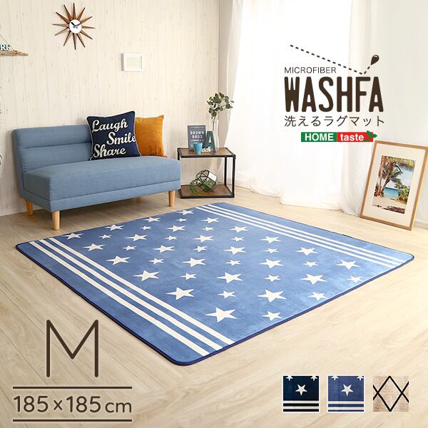 マイクロファイバーデザインラグマットMサイズ 185185cm 洗えるラグマット WASHFAカーペ