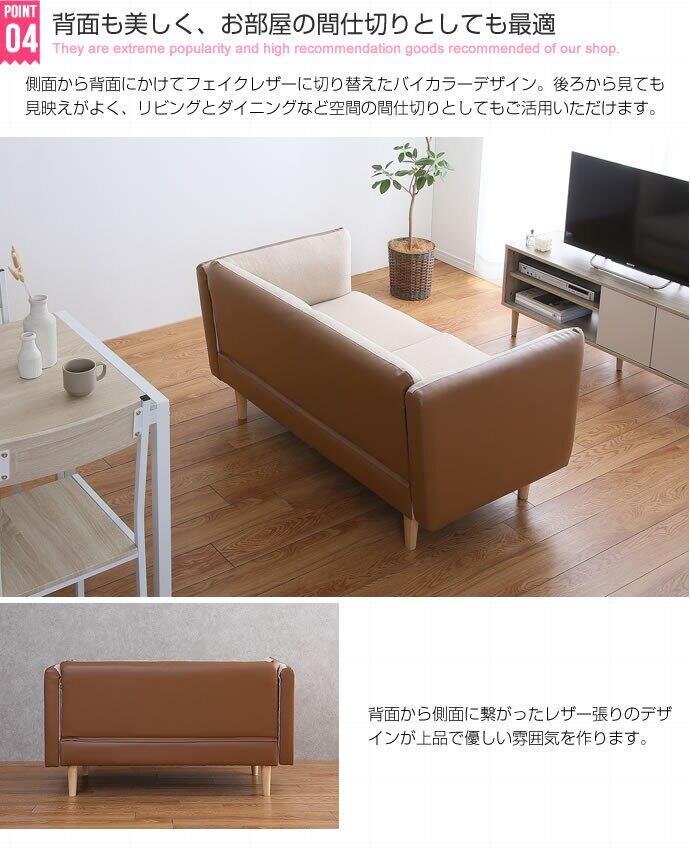 2人掛けソファ バイカラー ファブリックとフェイクレザーを組み合わせ ソファー