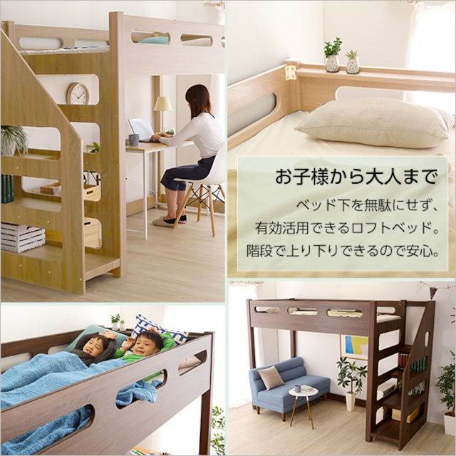 ロフト下に自由な空間を 階段付きロフトベッドYOUICK-ユーイック-ロフトベッド 階段付き 収納