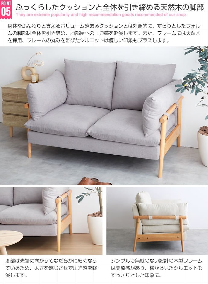 ファブリックソファ 2人掛け ソファ 天然木が生み出す上質感とボリュームのあるクッション ソファー