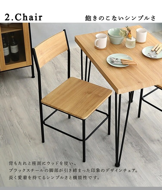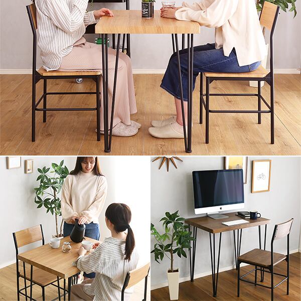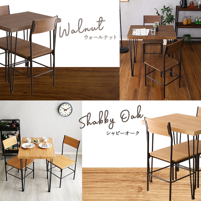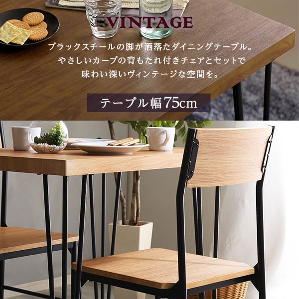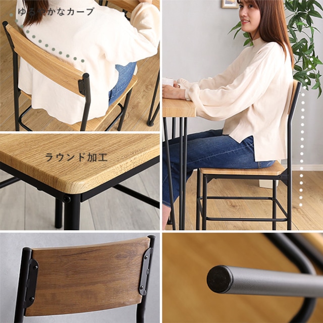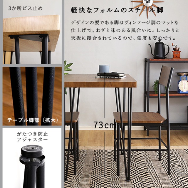 インテリア 背もたれダイニングテーブルセット テーブル チェア ヴィンテージ調 2人掛け スチール脚
