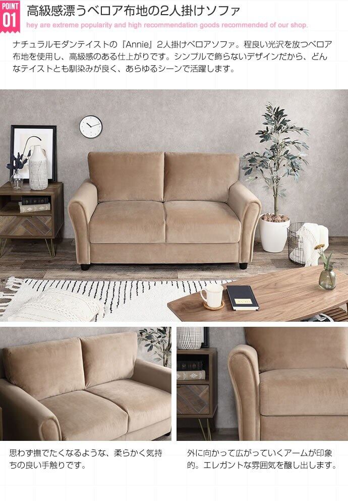 高級感漂う大人テイストのベロアソファサイズ 幅140×奥行80×高さ86 (座面高45cm)素材 木製フレーム、Sバネウレタン、ポケットコイル、ファブリック脚部:天然木注意事項 2〜5日営業日以内の発送予定となります。午前・午後のお届け時間のご指定が可能です。備考 【梱包サイズ】116cm×66cm×54cm【商品重量】約30.6kg【耐荷重】約200kg※組立工具は不要※組立て時間:2人以上で15分【ORG】