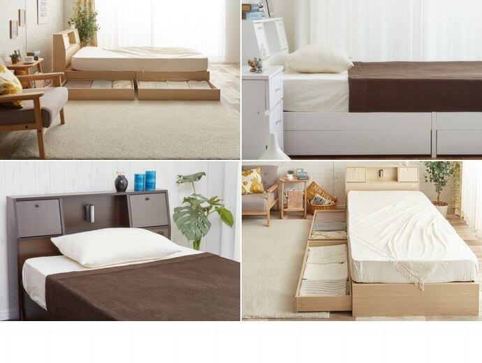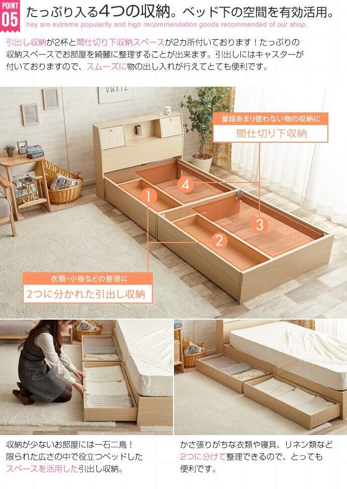 シングル 引出し付ベッド 並べて使える ベッド 照明 コンセント 収納棚付き ベッド