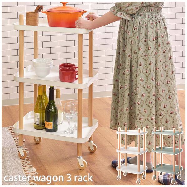 愛着の湧くカタチと、優しい色合いで心をつかむ 北欧ナチュラルな丸みを持たせたデザインとカラーで、優しい空間を作り出すマルチワゴンです。 ●木とスチールの組み合わせがおしゃれなマルチワゴン【商品サイズ】幅50.5×奥行35.5×高さ98cm【材質】天然木(ビーチ)/ラッカー塗装/スチール(粉体塗装)【組立】組立必要(スパナ付属)【送料】送料無料※北海道・沖縄・離島へのお届けは別途送料が加算されます。【カラー】ホワイト/グリーン【検索キーワード】ワゴン3段3Dマルチワゴンキッチンワゴンサイドテーブルナイトテーブルベッドサイドキャスタートレー木製天然木北欧ナチュラルシンプルかわいい収納収納棚棚ラックマルチラックオープンラック全2色ホワイトグリーン