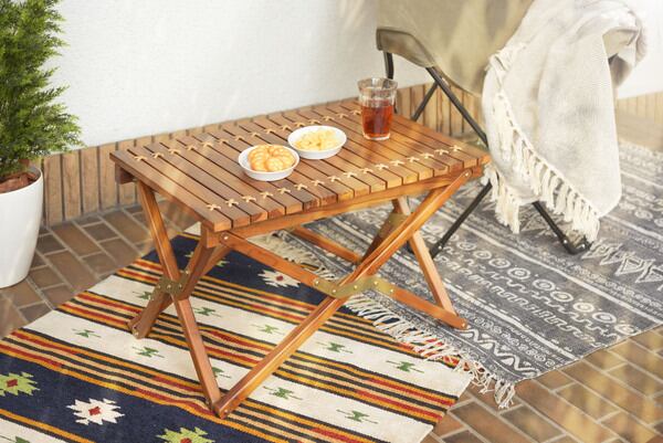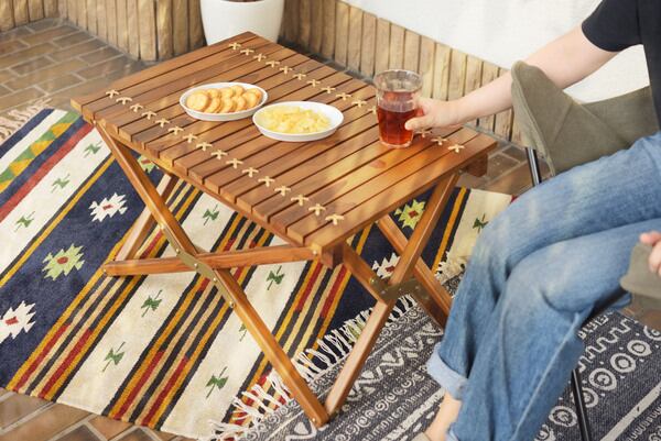 ワンランク上のアウトドアスタイルに【商品サイズ】幅65×奥行45×高さ40cm【材質】天然木(チーク)/ラッカー塗装/本革【機能】折りたたみ式【商品重量】6.5kg【耐荷重】約5kg【組立】組立必須【送料】送料無料※北海道・沖縄・離島へのお届けは別途送料が加算されます。【検索キーワード】アウトドアテーブル折りたたみセンターテーブル木製キャンプおうちキャンプキャンプギアグランピング