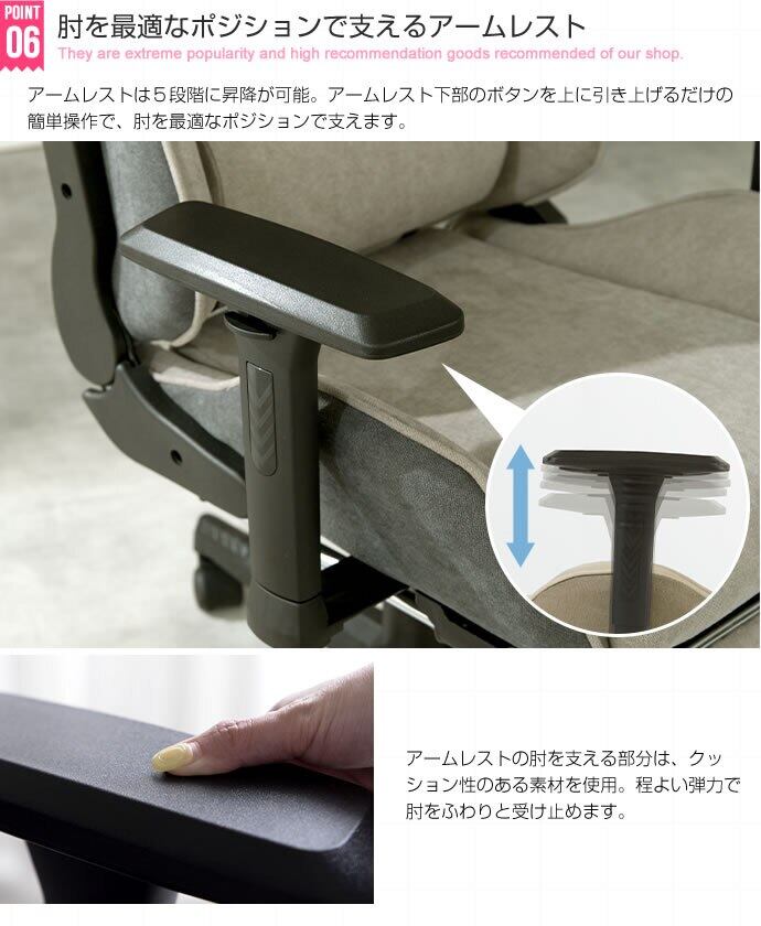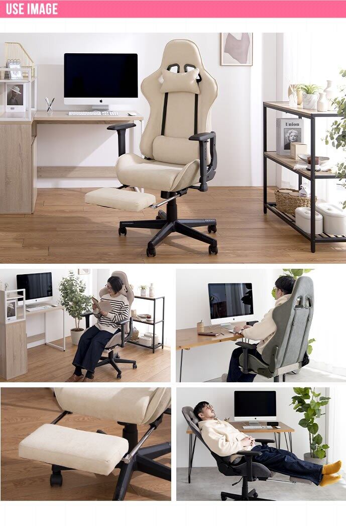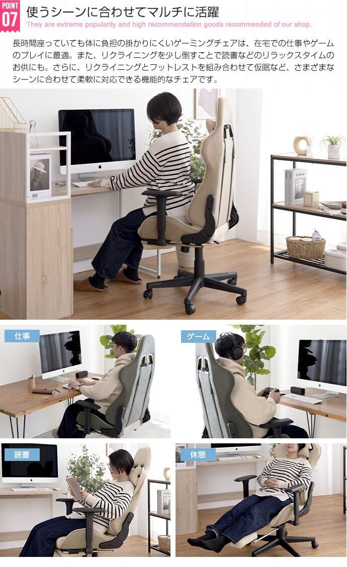 ゲーミングチェア ファブリック リクライニング フットレスト チェア 椅子 高さ調整可能