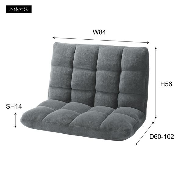 ボリュームのある厚めの座面と背もたれで、ゆったりとしたすわり心地です。しっとりとした肌触りで、季節を問わずお使いいただけます。●見ただけで分かるほどボリュームたっぷりのもこもこした座面。体全体を包み込むような、フィット感と座り心地を実現しました。●もたれてもしっかりと受け止めてくれるモコモコな背もたれ。●14段階リクライニングが可能なので、フラットにして寝転ぶこともできます!●記事はしっとりとした手触り。季節問わずお使い頂けます。【商品サイズ】幅84×奥行60~102×高さ56cm座面の高さ:14cm【材質】ポリエステル【機能】14段階リクライニング【商品重量】約7.5kg【組立】組立不要【送料】送料無料※北海道・沖縄・離島へのお届けは別途送料が加算されます。【カラーバリエーション】ブラック/グレー/ブラウン【検索キーワード】座椅子フロアチェア布地リクライニング生地フロアチェアグレーブラウンブラック