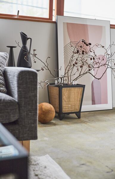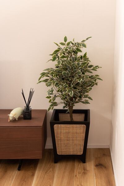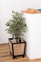 ●天然木とラタンを組み合わせた、落ち着きのあるデザイン。天然木ミンディ材と、ラタンを組み合わせた大人っぽい落ち着きのあるデザインの、プランターカバーです。●伝統的でモダンなデザイン黒で塗装した天然木のフレームと格子状に編み込んだラタンを組み合わせることで伝統的でモダンなデザインに仕上がりました。●脚付きプランターカバー脚のついたデザインとなっておりますので、和室等の落ち着いた空間にもしっとりと馴染みます。【商品サイズ】幅32×奥行32×高さ38cm【材質】天然木(ミンディ)/ラッカー塗装/ラタン【組立】組立不要【送料】送料無料※北海道・沖縄・離島へのお届けは別途送料が加算されます。【検索キーワード】プランターカバーラタン籐おしゃれ植物ボックス四角スクエア園芸モダンアジアンリゾートシンプル