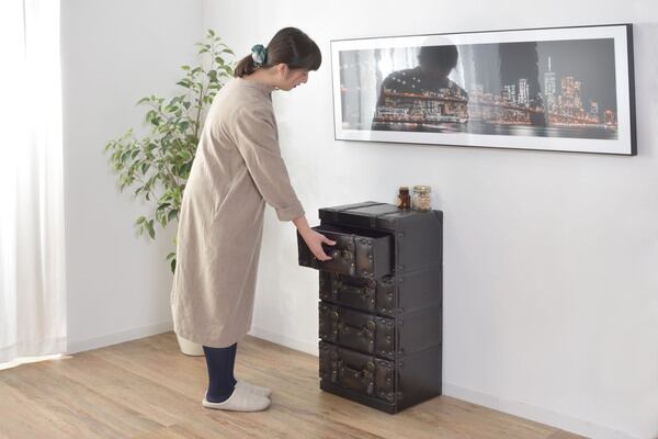 チェスト4D IW-874 4段 4ドロワー タンス 洋箪笥 旅行鞄 スーツケース風 トランク ビンテージ 衣類収納 インテリア 家具 おしゃれ