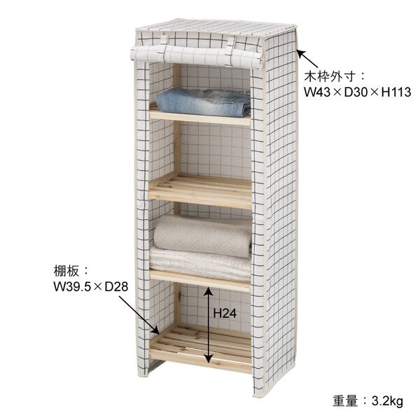 ファブリックシェルフ 天然木 杉 ポリエステル 麻