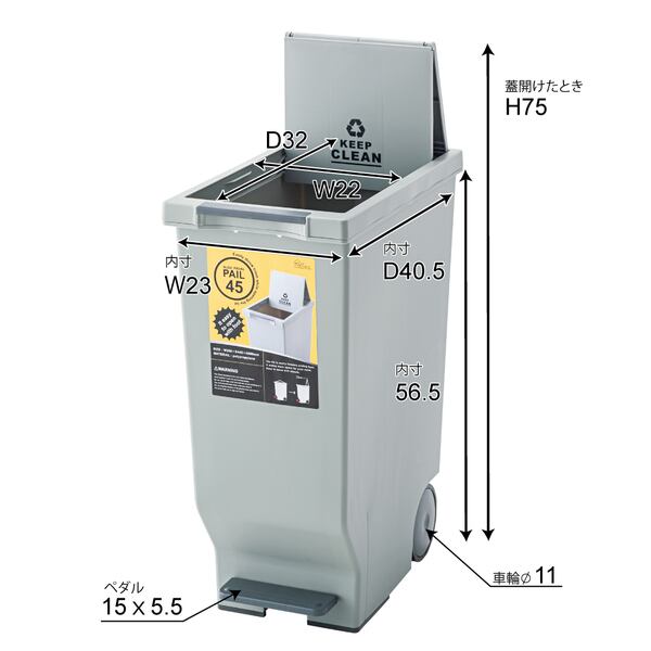 スライドペダルペール45L ポリプロピレン