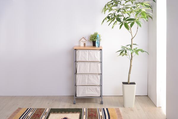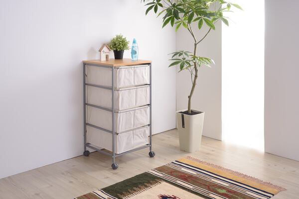 ●シンプルな無地のキャンバスを引き出しに使用した4段チェスト●レールを採用した引出しレールを使用した引出しは出し入れがラクラクストレス無く出し入れできます。キャンバス地を使用した引出しですが、底板が付属しているので、形がよれることもありません。●安定した使用感横揺れ防止金具背面には、横揺れ防止の金具付き。引出しの出し入れや、移動の際も安心です。●ザックリとした風合いキャンバス地のやさしい手触り引出し部分はキャンバス地を使用しています。通気性抜群で、サラッとした手触りが特徴です。汚れた場合に、外して洗えるのも◎※選択は手洗いのみ可能です。洗濯機を使用すると縮みます。【商品サイズ】幅43×奥行44×高さ84cm【材質】スチール(粉体塗装)/天然木化粧繊維板/コットン【組立】組立必要【送料】送料無料※北海道・沖縄・離島へのお届けは別途送料が加算されます。【カラー】ベージュ【検索キーワード】チェストおしゃれ4段収納引き出しシンプル無地