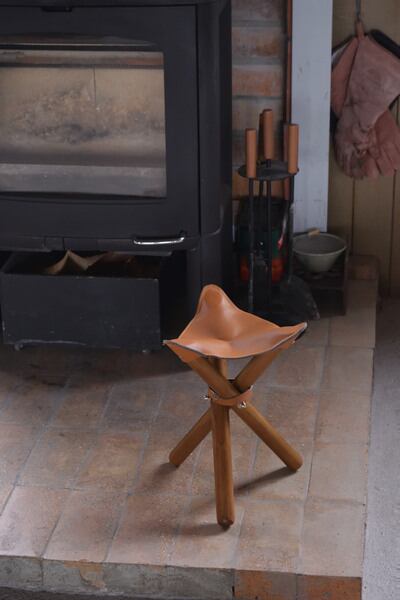 スツール NW-183 アウトドア チェア 椅子 いす イス 収納袋付き 折りたたみ 収束式 木製 本革 インドア キャンプ おしゃれ インテリア キャメル フォールディングスツール