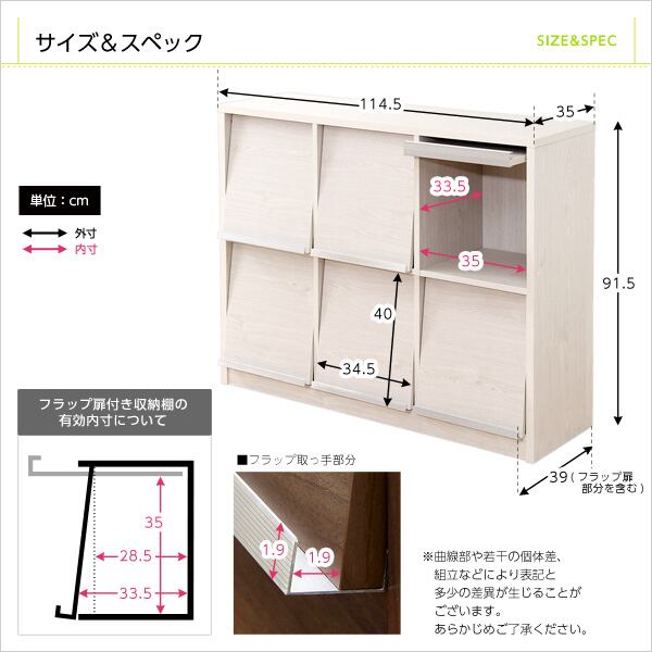 外寸:(約)幅114.5x奥行き39x高さ91.5cm(※フラップ扉部分を含む)