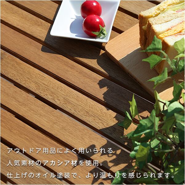 折りたたみガーデンテーブルチェア肘付き 3点セット 人気素材のアカシア材を使用
