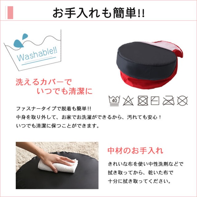 しっとり沈むカバーリング低反発クッション 洗濯可能なクッションカバー 丸型
