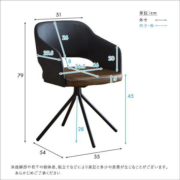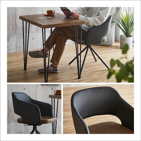 丸いフォルムが心地いい レザー調ダイニングチェア