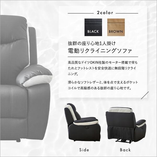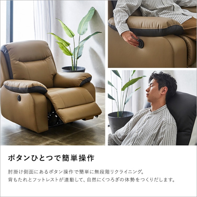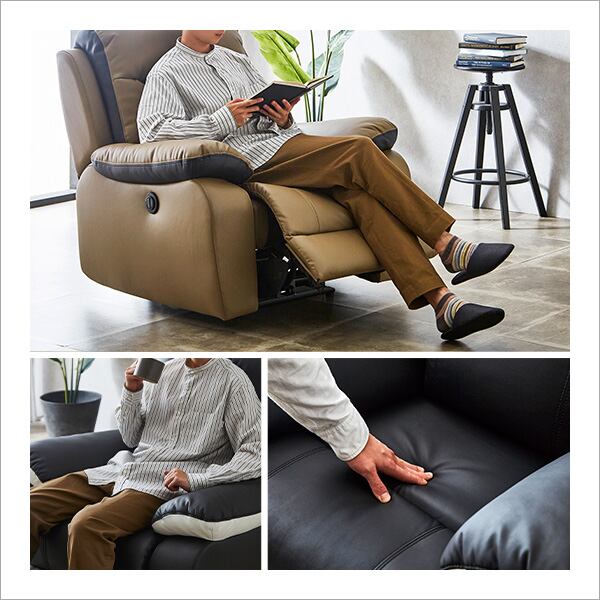 1人掛け 電動 リクライニングソファ OKIN社製モーター ソフトレザー ソファ