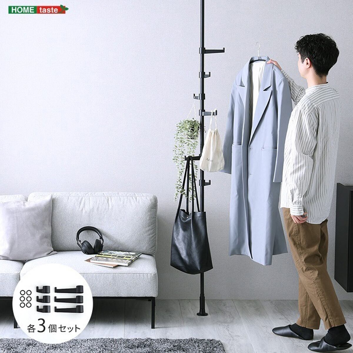 つっぱりポールハンガー フック大小3個セット